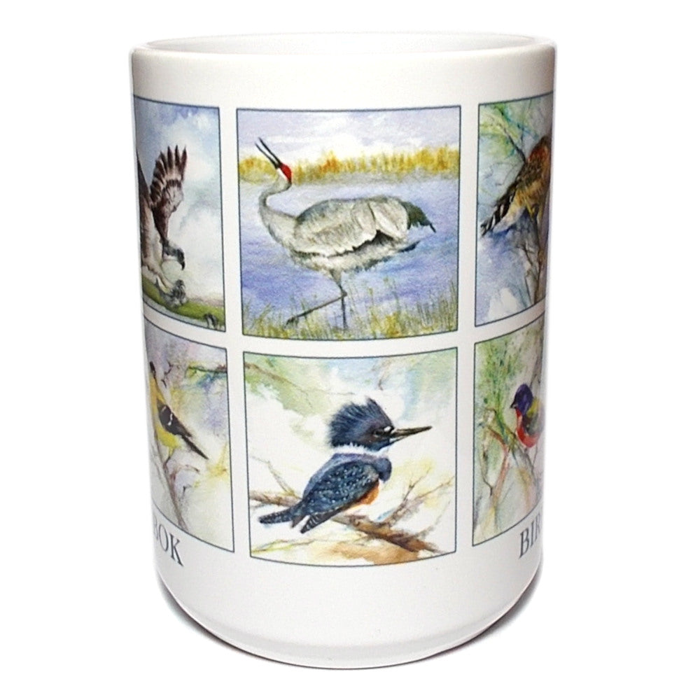 Enjoy nature at your fingertips with this lovely 15-oz white ceramic mug that features colorful reproductions of watercolor artwork by award winning artist Shirley Bell. The wrap-around design features the following birds that are frequently seen at Bok Tower Gardens: