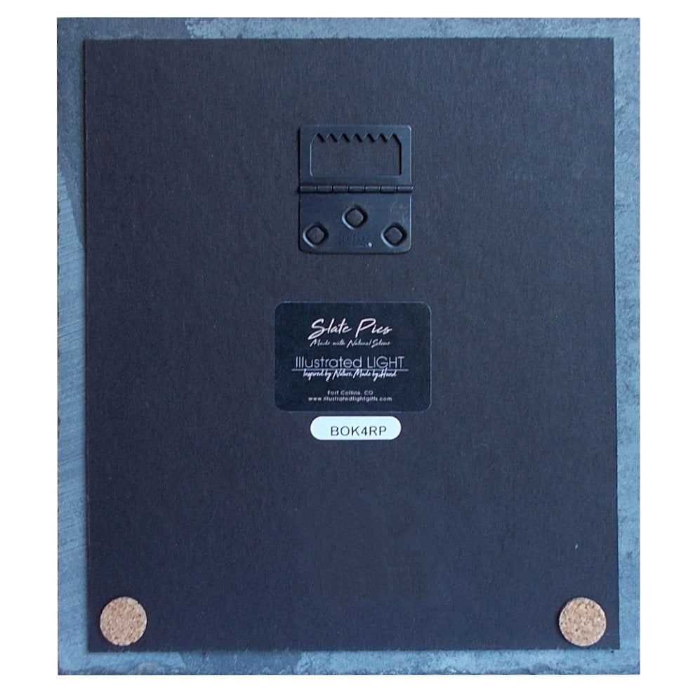 This artwork features a beautiful giclée print of a vintage image of the Singing Tower that is printed onto a 4" X 5" metal plate with UV protection, making it scratch & fade resistant. The metal plate is then adhered to a 6½" X 7½" natural slate tile for an elegant presentation that is ready to hang on the wall or displayed on an easel (easel not included). Because of the uniqueness of natural slate, some variation will occur from image pictured.